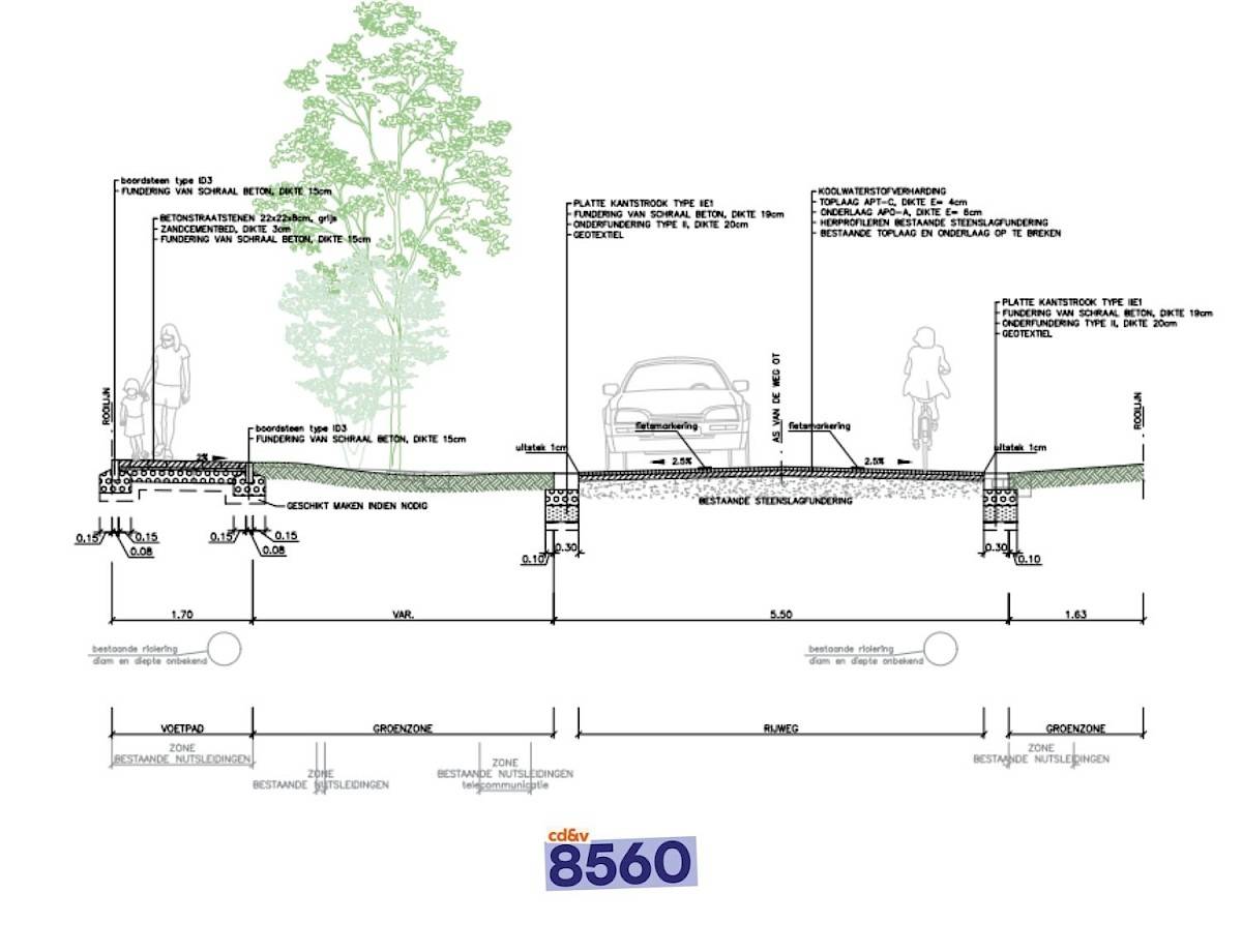 Het Agentschap Wegen en Verkeer (AWV) erkende die schade en kwam overeen om 66.500 euro (incl. btw) bij te dragen aan het herstel. Maar enkel de asfalt vernieuwen zou de straat niet klaar maken voor de toekomst. Daarom koos de gemeente voor een volledige heraanleg met aandacht voor verkeersveiligheid, leefbaarheid en duurzaamheid.