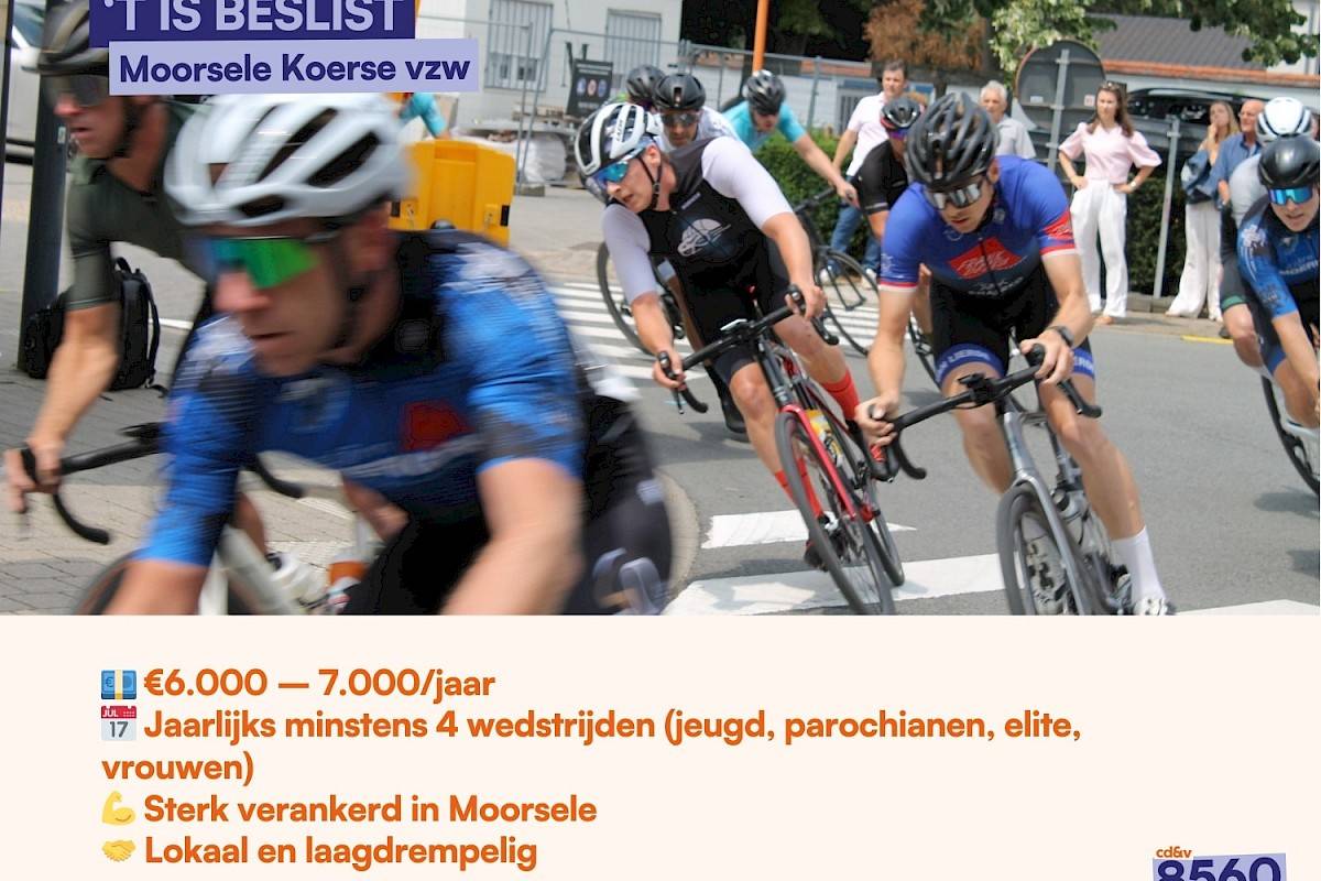 Niet één koers, maar minstens vier wedstrijden per jaar. Van jeugd tot elite, mannen en vrouwen: hier krijgt talent alle kansen. Moorsele Koerse is sterk lokaal verankerd en een mooi voorbeeld van hoe vrijwilligers en gemeenschap samen koers maken.